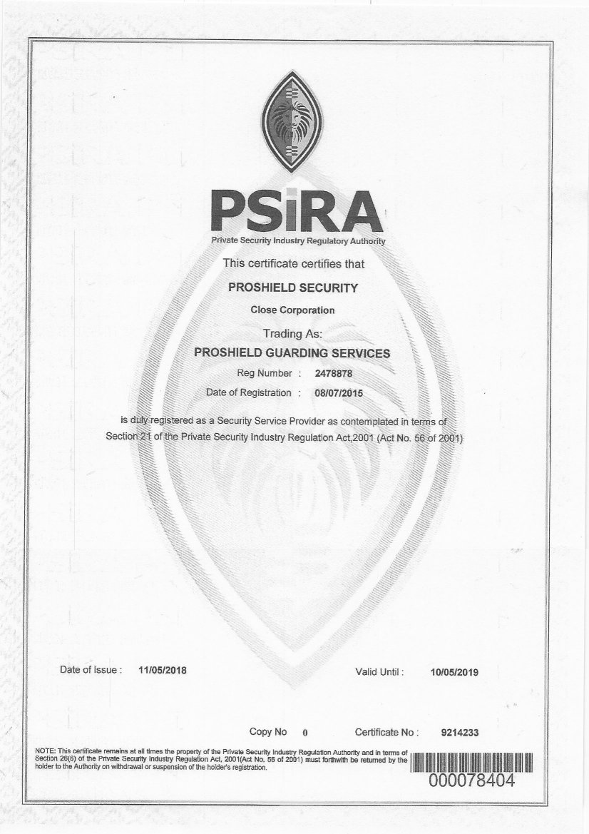 Get An Online Security Guard Quote We can supply you with guards for your residential, commercial, industrial and retail premises. Talk to us on 012 333 7 555 or Click Here To Get A Quote We Are A Registered Members Of Private Security Industry Regulatory Authority & Security Association Of South Africa Certification